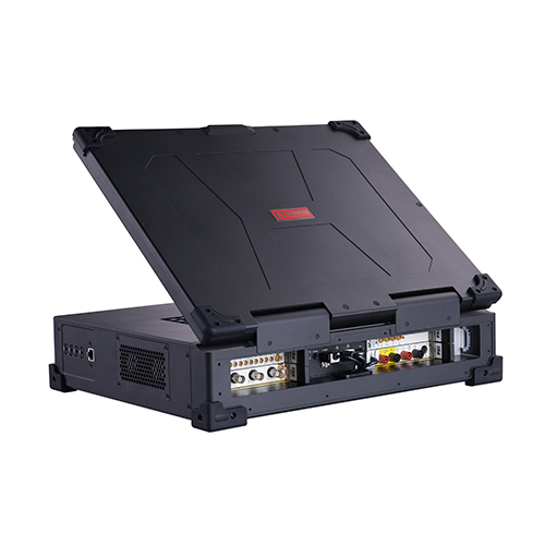 厚物科技研制的模块化仪器测控笔记本,铝镁合金结构,一体化设计,结构紧凑,小巧便携,配备防撞包角,加固手把,坚固耐用,测控笔记本包括嵌入式控制器、高速背板和加固便携式机箱在内的整体系统解决方案,兼容高速数采、高速数字化仪、数字万用表、航空总线、FPGA、射频及开关等PXIe/PXI模块板卡,用户可快速构建加固便携式测控系统,用于外场测试和装备综合保障。
