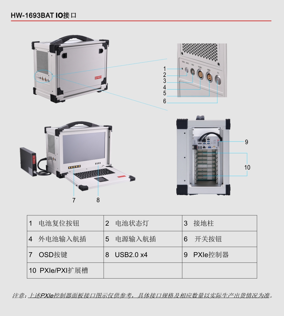 HW-1693BAT是业界首款15.6’’内置嵌入式PXIe控制器、PXIe背板、智能锂电池、高清工业显示屏和加固机箱的便携式测控平台,此测控平台采用专业的工业外观设计、全铝镁合金结构加固紧凑型设计,集成15.6’’高清工业显示屏、工业电阻触摸屏、工业触摸板、防水硅胶键盘和智能锂电池等,具有高集成、强固、便携等特点,适用于各种恶劣的户内外环境或测试设备便携移动的复杂工况。HW-1693BAT(G3)